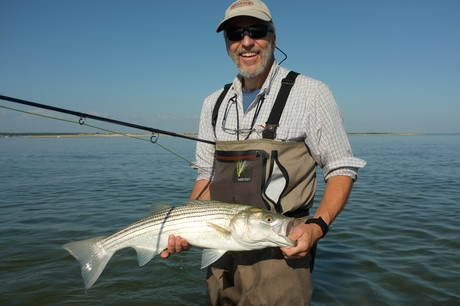 As we start creeping forward, we spread out but stay in sight. Line is peeled off the reel and primed with a few false casts. The bottom starts to fall away as we walk up on a channel cutting through the bar. We cast across and let the line swing in the current. With the butt of the rod tucked up under our arms we retrieve hand over hand at what we think is the right speed. Sometimes, it happens right away. The line comes tight and alive. I hear you chuckling, and I know what that means.